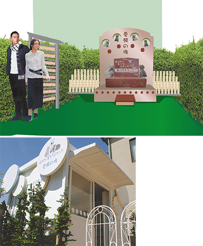 合祀墓「愛願の碑」と室内型納骨堂はペット専用。愛願の碑は、従来の墓同様の御影石を使用。犬や猫などの石造りの動物を配置し、愛らしさをプラスした。価格は骨壺の大きさによって違い、1万円〜となっている。