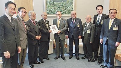 鶴見区と港北区の水防協議会がこのほど、菅義偉官房長官らを訪問し、国交省管轄となる一級河川・鶴見川の整備促進に関する国家要望を行った。