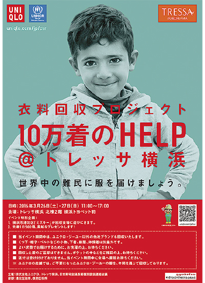 トレッサ横浜(港北区師岡町)で3月26日(土)・27日(日)、衣料回収プロジェクト「10万着のHELP」が開かれる。