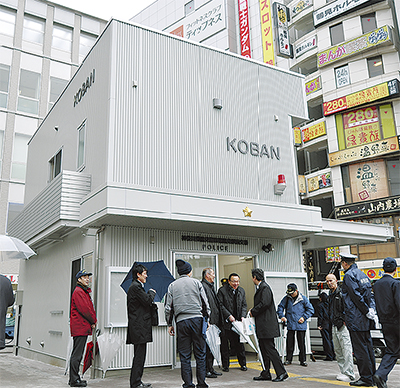 交番の脇には約400平米の広場スペースも整備され、3月31日に広場で初めての交通安全キャンペーンが行われた=中面に関連記事。今後の活用法は、検討を進めていくという。