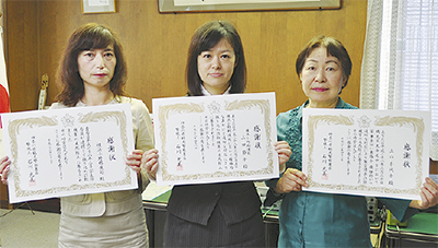 詐欺被害を防いだとして、東寺尾で家政婦をする山口千代子さんと、横浜小野郵便局(猪川理恵局長)、同局の山田節子さんへ、4月8日、鶴見警察署から感謝状が贈られた。