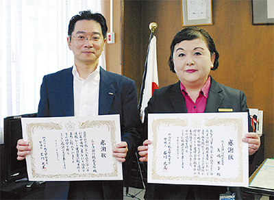 還付金詐欺被害を未然に防いだとして、みずほ銀行鶴見支店と同店の矢嶋栄子さんへ5月12日、鶴見警察署から感謝状が贈られた。