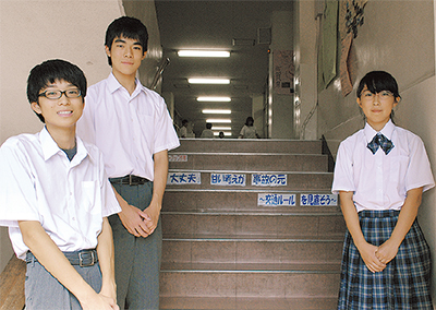 同校では7月、事故の再現から交通マナーを学ぶ「スケアードストレイト式自転車教室」を鶴見署主催で実施。教室での学びをその場限りや他人事にせず、自ら考えてもらいたいと同署が標語作りを提案。教室で感じたことをふまえ、全校で標語を作り、風紀委員が優秀作品を選出。選ばれた3作品は、校内階段のステップに掲示され、「段々マナーアップ作戦」として実施されている。