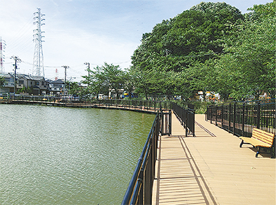 09年の公園整備の決定以降、地域住民と市が管理運営方法を検討し、15年7月、東側の散策デッキなどが完成。当時から西側用地の交渉は継続中だったため、全面開園は延期。東側の一部利用開始となり、釣りも可能な同園には愛好者らが多く集まっている。