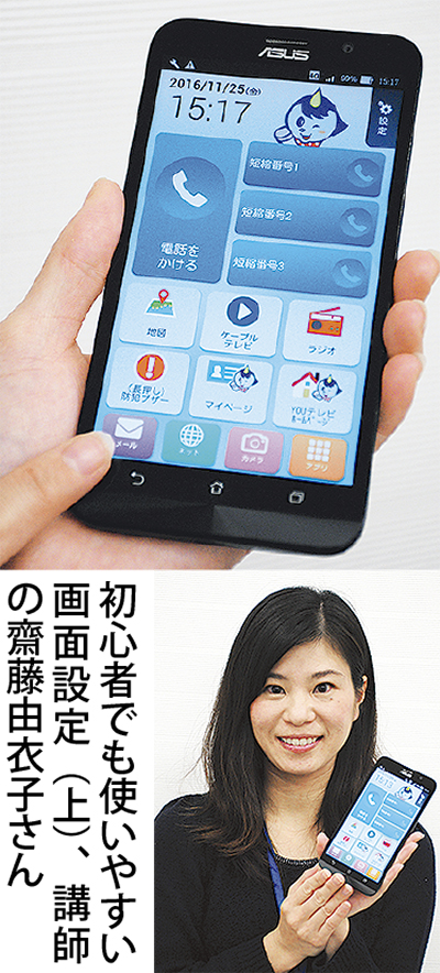 教室で使用するスマホはYOUテレビが取り扱うもの。セキュリティソフトを標準装備し、アプリも制限なく入れ放題。店頭や電話での無料相談など、サポートも充実。受講後、乗り換える人も多いという。使いこなせば楽しさ広がるスマホ。まずは教室で体験を。