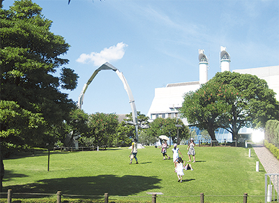 91年の全面リニューアルの際、市民に開かれた「ファクトリーパーク」として、緑地の一部(1万3千平方メートル)を一般に開放。小高い丘となっている芝生広場のヒルトップガーデンは、一般客と物流導線を分離させるために作られたトンネルの上にあたり、災害発生時の一時的な避難場所としての機能も併せ持つといった工夫も凝らした。