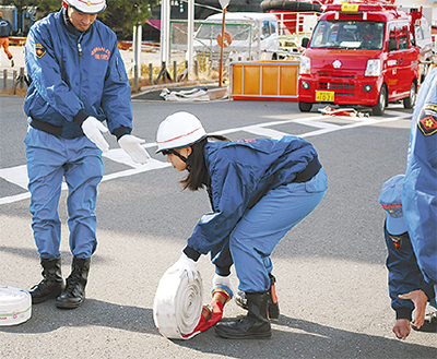 消防団への入団年齢は満18歳以上。市内で高校生のうちに入団したのは6人で、うち女性は2人。鶴見では過去に男子高校生が1人いたが、女子は初めてという。