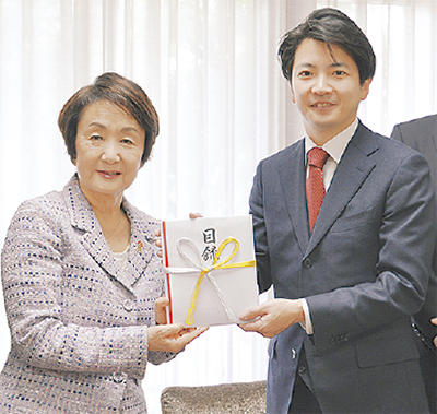 住宅事業などを手掛けるすてきナイスグループ(株)=本社・鶴見中央=が2月17日、市庁舎で横浜市環境保全基金へ寄付を贈呈した。またこれを受け、市から同社へ感謝状が贈られた。