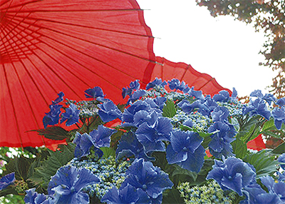 園内には300品種のアジサイのほか、サルビアやユリ、バーベナ、ガウラなど季節の宿根草が次々と咲き、6月下旬頃からはバラの二番花も楽しめる。「今年は人気のアジサイと和傘の装飾でお迎えいたします。雨の日も風情があっておすすめ」とスタッフ。
