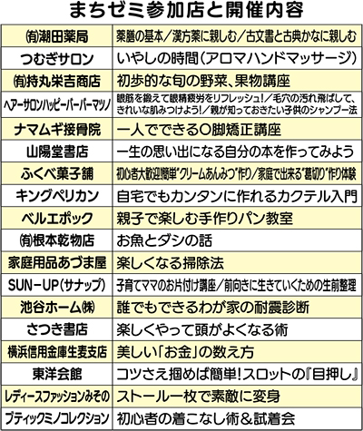 初開催となる生麦では、生麦駅前通り商友会、岸谷商栄会、花月園駅前通り花商会の3商店街を中心に、18店舗が参加。全24講座が展開される予定だ。
