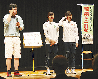 後半では神奈川県警から犯罪インフラ撲滅特命大使に任命された双子芸人「まかりな」が先輩芸人と共にネタを披露。笑いを誘いながら振り込め詐欺の手口を紹介し、会場を盛り上げた。