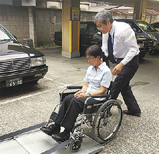 Qタクは一人では不安な高齢者のために、タクシー運転手が病院や買い物などに付き添ってくれる区内初のサービス。