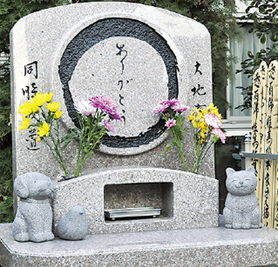 江ヶ崎町唯一の寺院「寿徳寺」では、ペットの法要を受け付けている。年に1度の合同供養で読経し、供養塔「ありがとう」に納骨ができる。費用は1万3千円から。火葬前の読経も可能。同寺の廣瀬良弘住職は「輝きを持った尊い命。丁寧に供養します」と話す。