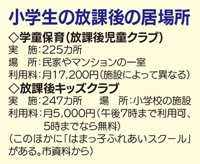 現在は225カ所あり、市こども青少年局によると、17年4月時点で約1万700人が利用し、この数年は横ばい。利用料はクラブによって異なるが、平均で1カ月1万7200円。