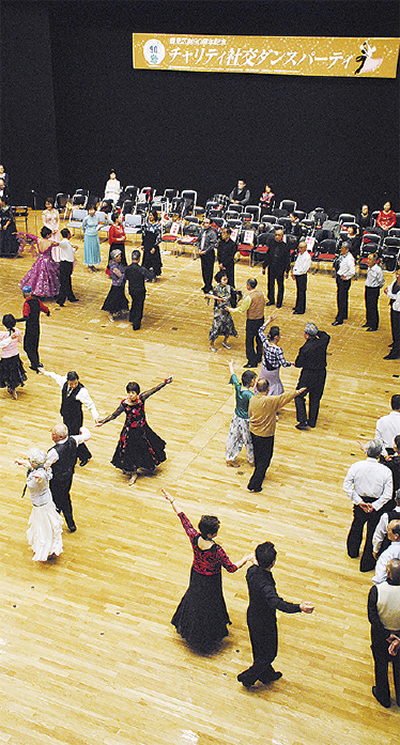 当日はフリーダンス、ワルツやタンゴといった4種目を披露するトライアルなどを実施。発案した山田三夫さんは「予想以上の参加者で1回目としては大成功。皆さんに協力を得ながら継続できれば」と話した。収益の一部は区社会福祉協議会に寄付された。