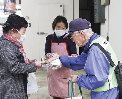 区防犯指導員連絡会がレアールつくの商店街で3月27日、振り込め詐欺や悪質商法防止のためのキャンペーンを行った。