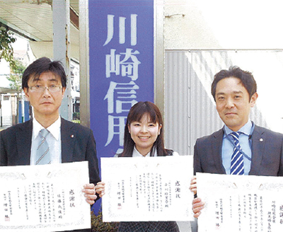信金3人に感謝状