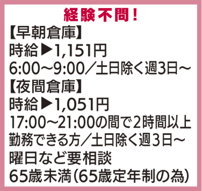 食を中心に安心・安全な暮らしを提供している同社が倉庫スタッフを募集中。仕事は空き箱、回収物の荷降ろしや分別作業。「全身運動なので健康促進にもつながる」とスタッフ。運動しながら手軽に小遣い稼ぎができる。未経験や女性も大歓迎。同社では10代〜60代の幅広い世代が活躍しており、世代を超えた輪が広がる。気さくで働きやすい職場だ。