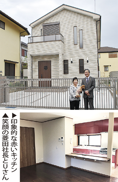 鶴見で創業60余年、地域にしっかりと根ざしている「菱田工務店」は、その実直で親切・丁寧な仕事ぶりが信頼を得ている。今回手がけたのは宮前区のU邸新築工事だ。工事のきっかけは昔から付き合いのある鉄骨屋さんからの紹介。「注文住宅を建てるなら菱田さんだね」と数ある取引業者の中から勧められたという。始めの打ち合せから完成設計図ができるまで約3カ月をかけており「建てはじめてからの変更はお金も時間もかかる」との思いから、細部のディティールまで納得がいくまで詰め現物が見られるものはショールームに何度も一緒に足を運んでいる。Uさんは完成した家を目にし「自分たちの思いを形にしてくれた」と満足そうに微笑む。