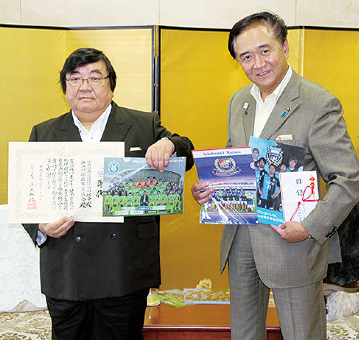 神奈川県遊技場協同組合(伊坂重憲理事長)と神奈川福祉事業協会(同会長)は6月28日、青少年保護育成を周知するクリアファイルを神奈川県へ寄贈した。2011年から毎年継続している。