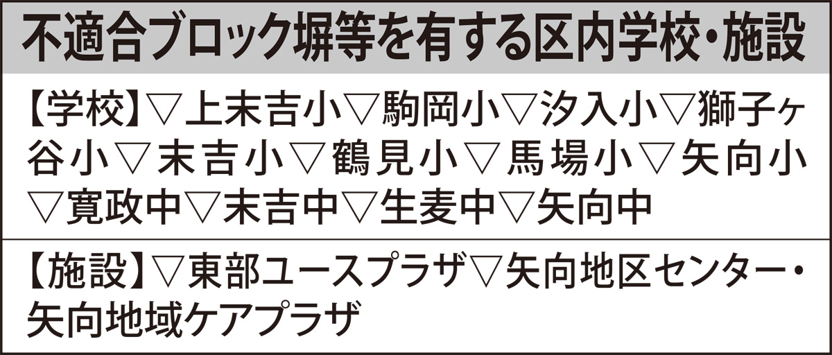 区内12校で不適合ブロック