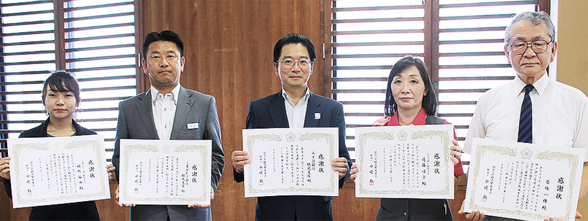 振り込め詐欺を未然に防いだとして鶴見警察署は銀行など3社に感謝状を贈った。表彰されたのは、現金自動機器メンテナンスを行う(株)ジェイ・エフ・エルの若林一種(かずみ)さん、三菱UFJ銀行鶴見支店兼鶴見駅前支店の飛田敏行支店長、横町麻由さん、みずほ銀行鶴見支店の小林直人支店長、遠藤順子さんの6人。