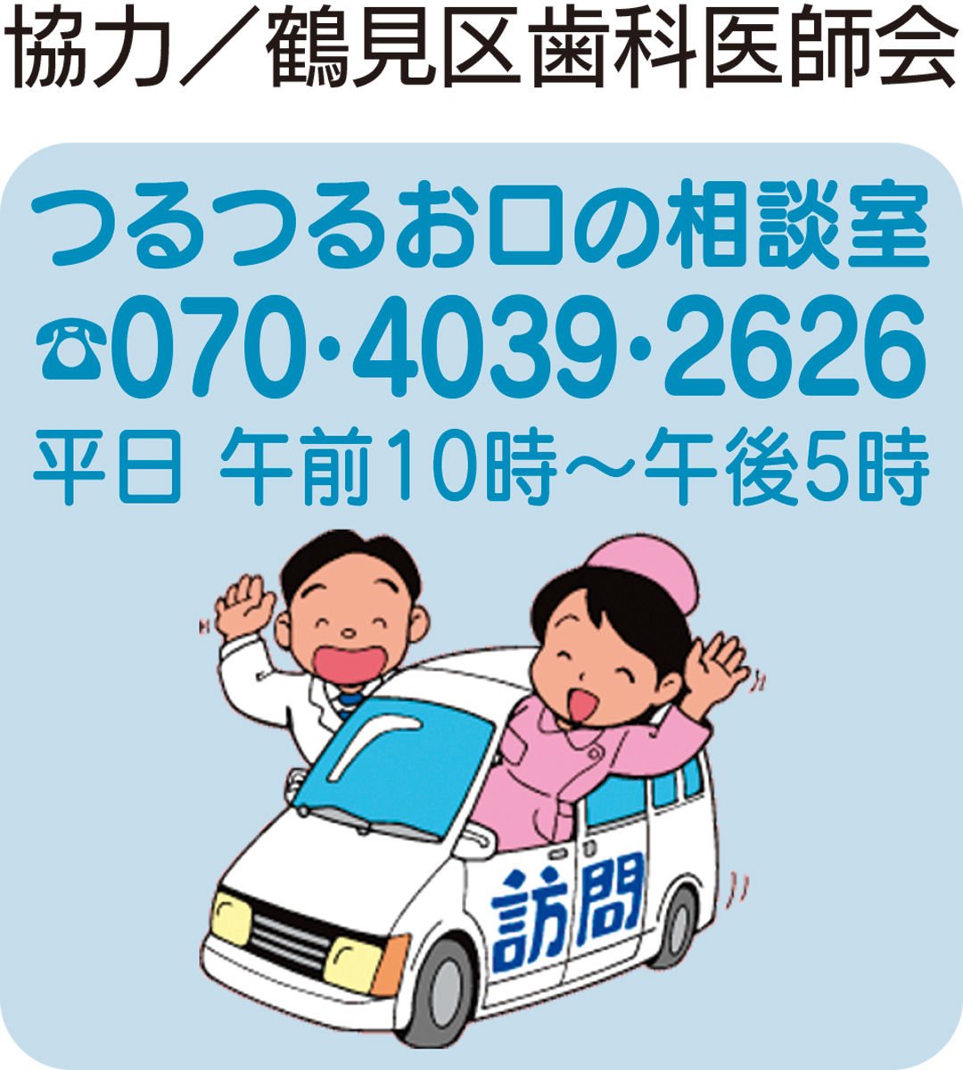 こんにちは、鶴見区歯科医師会です。9月1日〜来年1月31日まで、先着550名限定(横浜市全域)で自己負担無料の訪問歯科健診を行います。