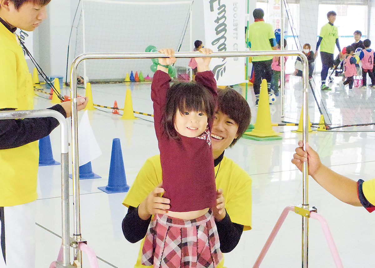 25メートル走やボール投げ、鉄棒ぶら下がりなど、様々な種目に遊び感覚で挑戦し、体力を測定できる。
