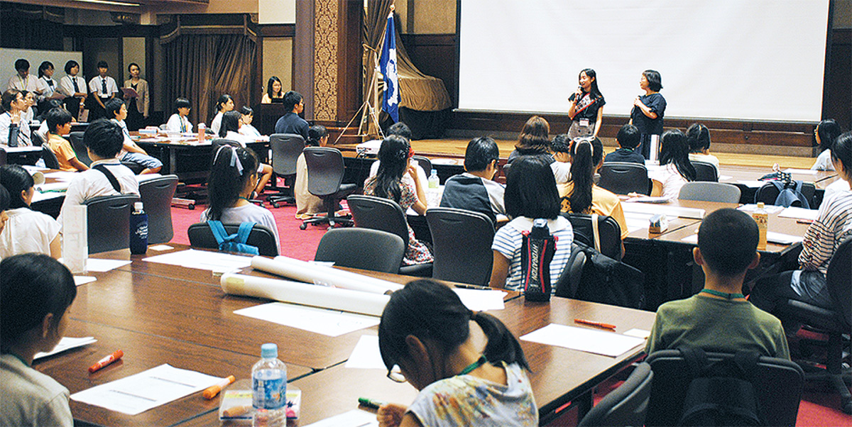 県と田園調布学園大学=川崎市麻生区=が協働で進める「大学発・政策提案制度」の中で取り組む、かながわ子ども合衆国事業の一環。県庁での開催は県議会の鈴木秀志議員が一役買い実現したという。
