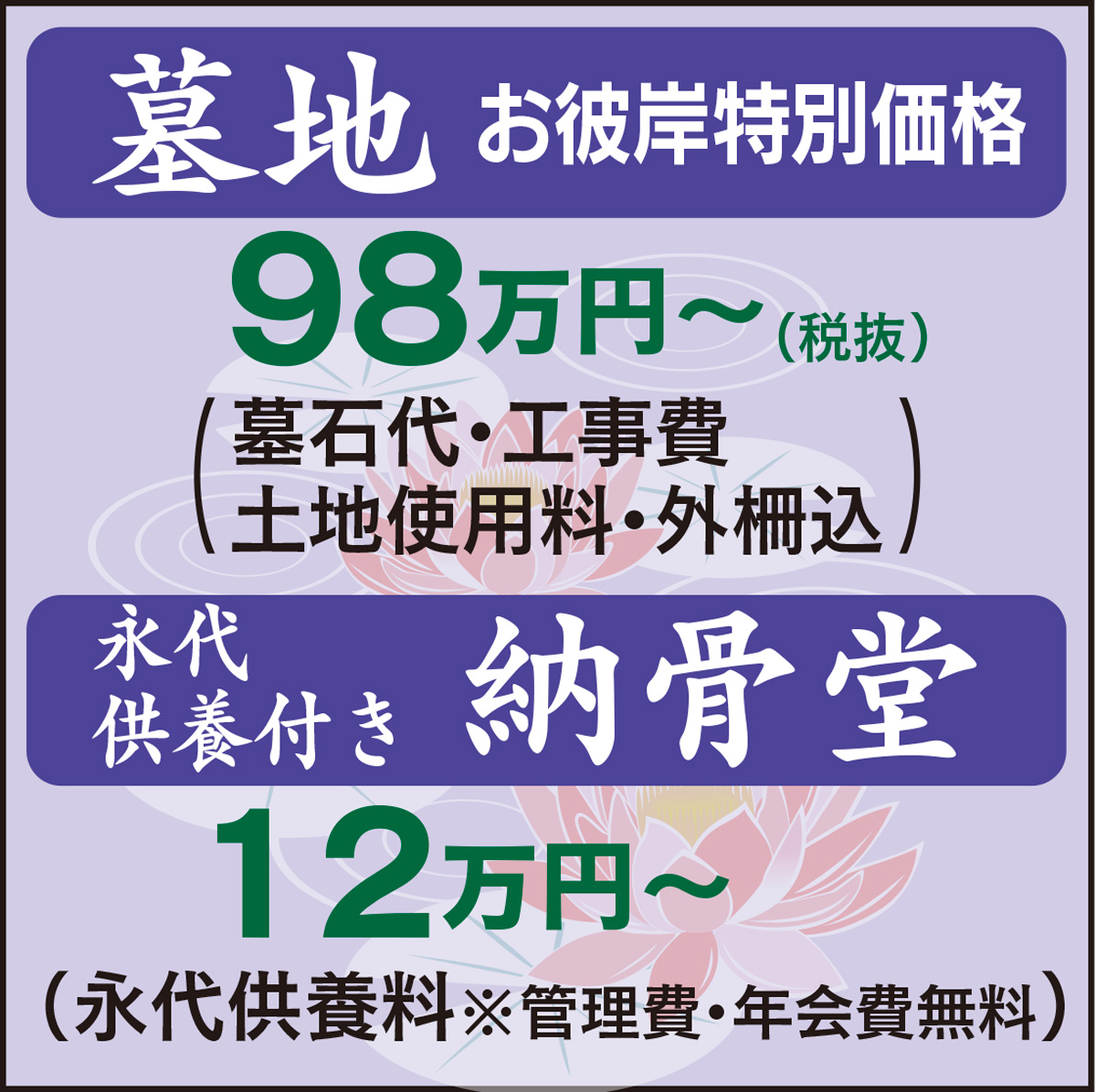 お彼岸特別価格の墓地は区画数に限りあり。この機会に色々と相談してみては。