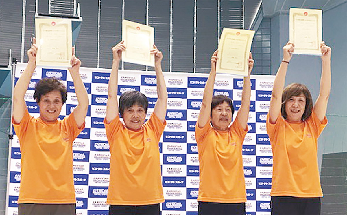 記録を塗り替えたのは、藤枝康子さん(59)、青柳夕起子さん(72)、永島郁子さん(77)、和田芙沙子さん(72)の4人。いずれも区内在住で、ザバス鶴見の水泳教室に通い、18歳以上が参加できるマスターズの選手として登録している。