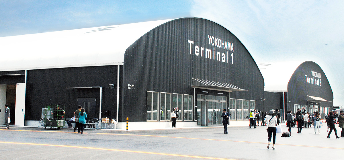 横浜ベイブリッジをくぐれない超大型客船のために整備された大黒ふ頭客船ターミナル=鶴見区大黒ふ頭13=が、このほどグランドオープンした。4月19日には、英船籍で世界的人気を誇る豪華客船「クイーン・エリザベス」(QE/9万900トン)が第1船として3年ぶりに着岸。記念セレモニーに華を添えた。
