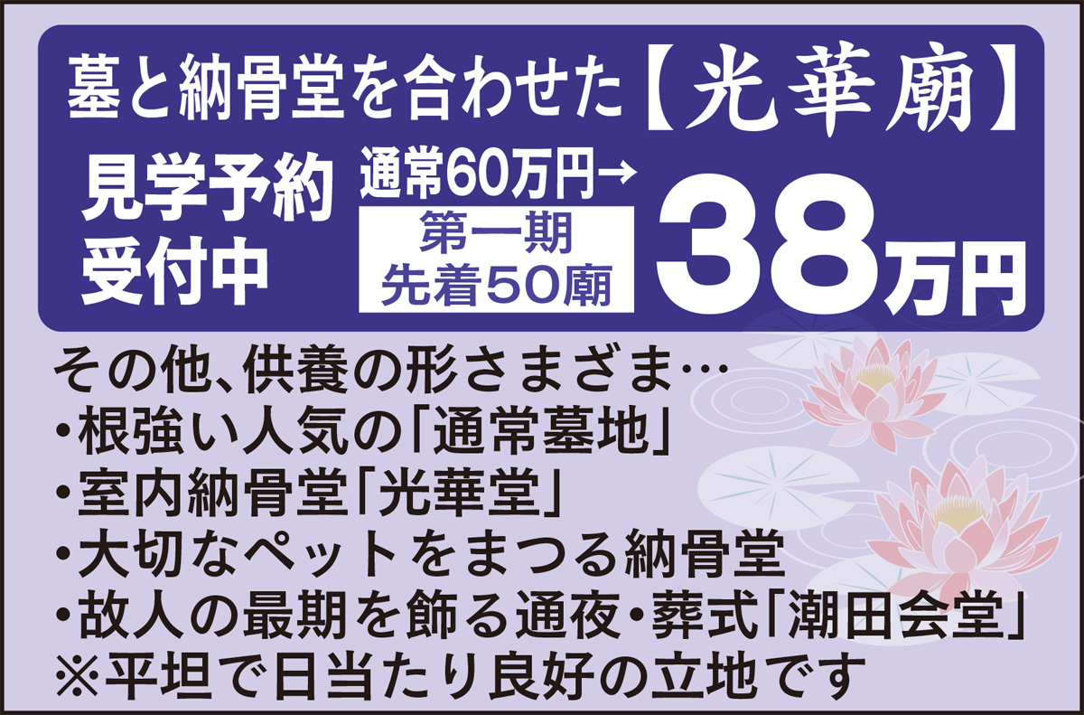 「小さくて可愛い。維持管理など将来を考えたら、これくらいがちょうどいい」――そんな評判の声も上がる終の棲家が、区内にある。寺歴450年以上の由緒をもつ潮田山光永寺=汐入町=が提供する「光華廟」だ。