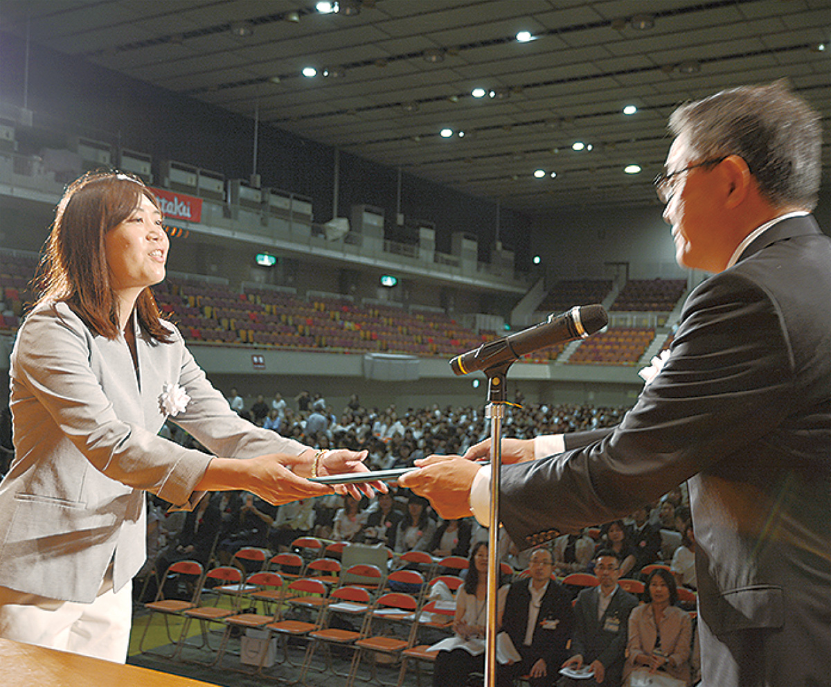 2019年度の横浜市幼稚園大会が6月26日、横浜文化体育館で開催され、勤続5年以上の教員と職員437人が表彰された。区内からは26人の教職員が永年勤続者として登壇した。