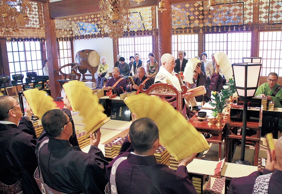 光瑞山天王院(生方常明住職=人物風土記で紹介)で10月24日、文政以前から続く伝統行事・大師講があった。区内の天台宗の寺院7人と区外から5人、併せて12人の住職が集まり、経典『大般若経』を転読した。