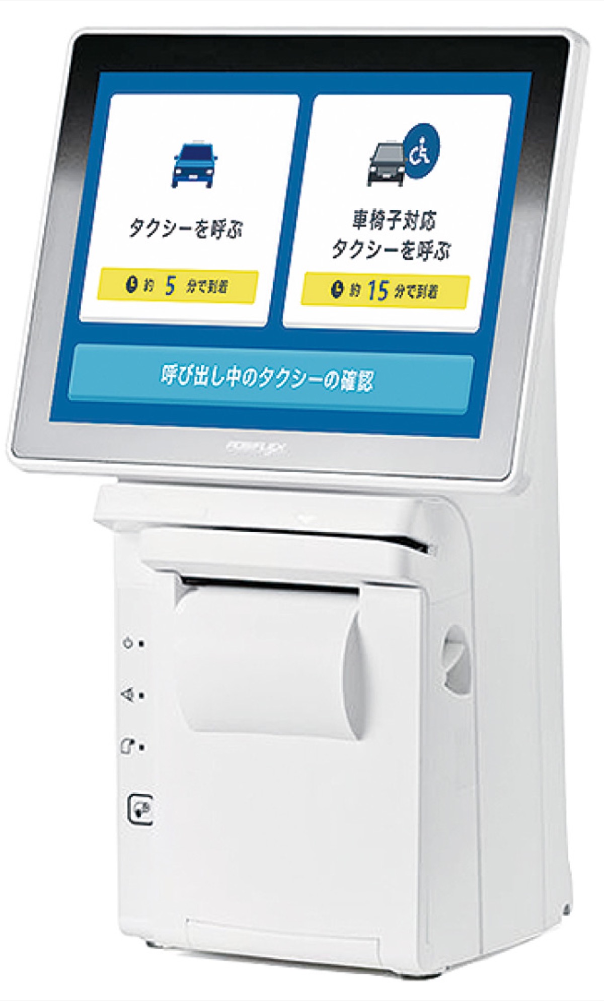 同端末はタッチパネルでタクシーを呼ぶことができ、待ち時間の目安をリアルタイムで表示。「モブコールを使えばタクシー会社を問わず『近くを走る』空車タクシーを呼ぶことができる」と同社担当者。実証実験にはタクシー会社55社、約3500台が参加予定。端末は迎車料金と通常の運賃のみで利用できる。
