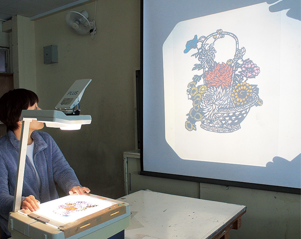 メインとなる発表の場は同校の文化祭である「ふじづか祭」。発表時間は長くて12〜13秒。その一瞬で印象に残る作品を作るため、生徒たちは約1年かけて制作に励む。作品は、黒い紙の上に図案をのせ、デザインカッターと呼ばれる細い刃で線を切って作り上げる。一度間違えると、また一から切り直さなければならない根気のいる作業だ。タイトルも生徒らのセンスが光る。顧問の松永絵梨奈教諭は「虎の絵に虎と題名をつけても面白くない。しっかり考えるよう指導している」と話す。