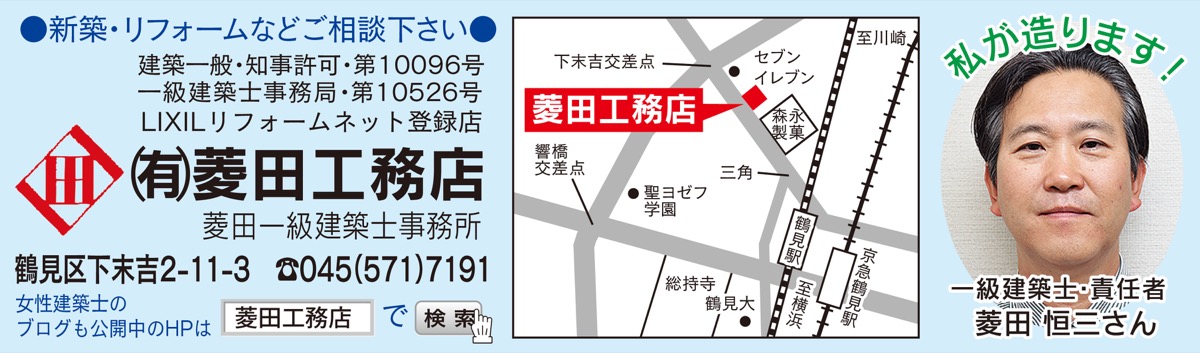 鶴見で創業60余年、地域にしっかりと根ざしている「菱田工務店」は、その実直で親切丁寧な仕事ぶりが信頼を得ている。今回手がけたのは中区のY邸新築工事だ。
