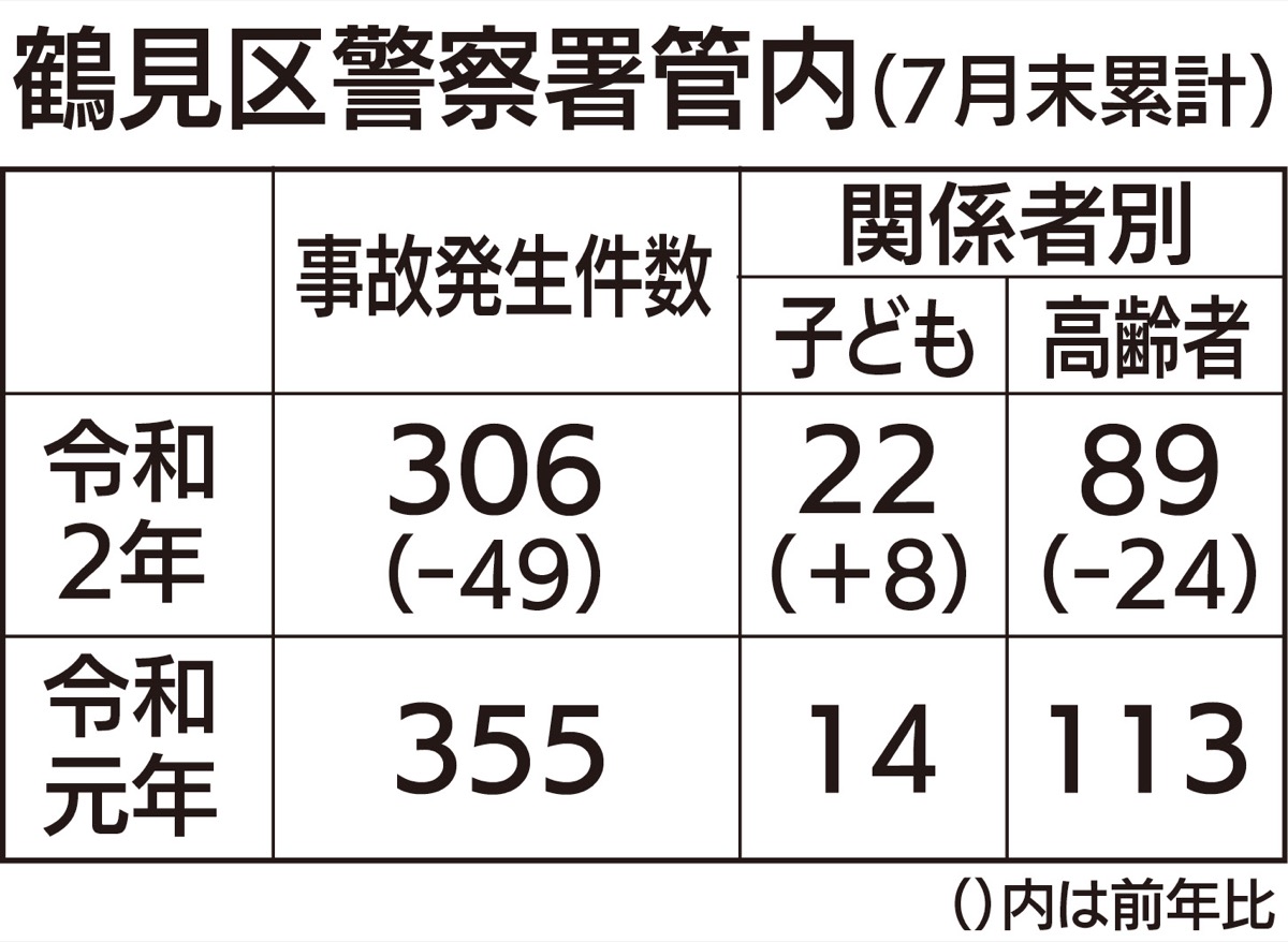 鶴見警察署管内で幼稚園から中学生までが関わる子どもの事故が増加していることが分かった。