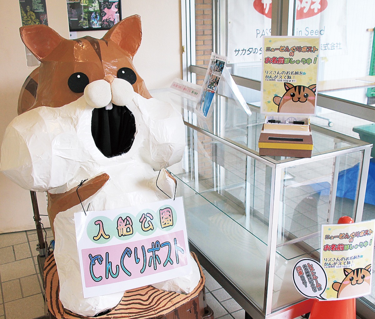 入船公園=弁天町=が9月26日、リスをモチーフにした新しいどんぐりポストをお披露目した。