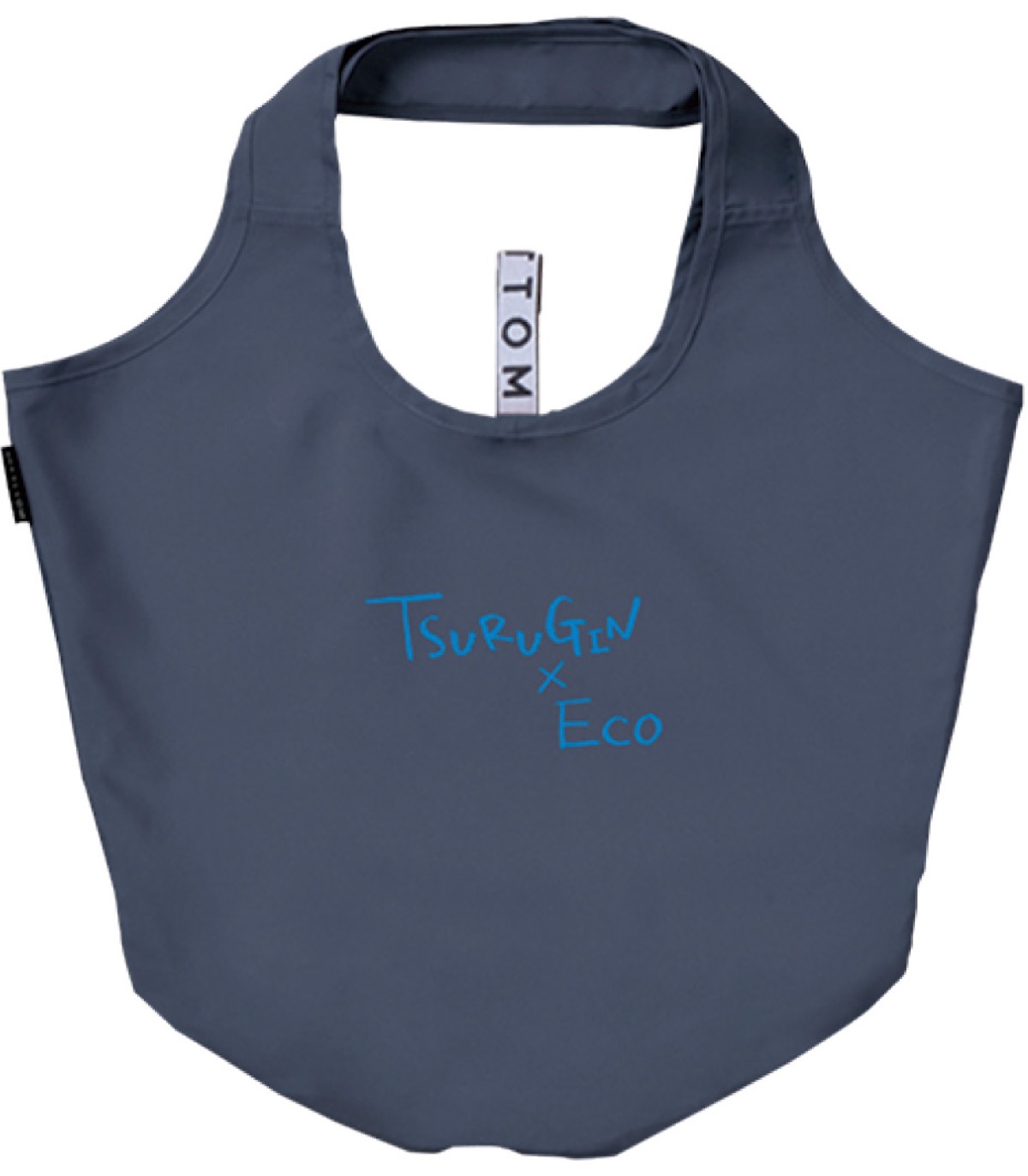 エコバッグは、肩掛けができる大きさで、中央に「TSURUGIN×ECO」とロゴをあしらったオリジナル。男女とも持てるようにと、色はネイビーとした。