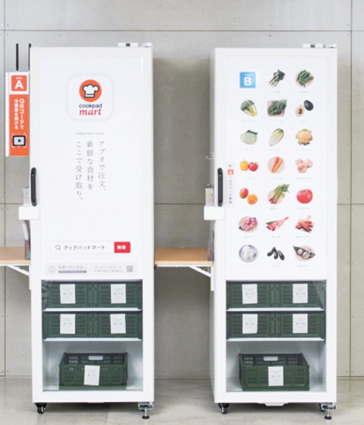 クックパッドマートは、利用者がスマホアプリから生産者が販売する食材を購入し、指定した「マートステーション」と呼ばれる受取用冷蔵庫で受け取るもの。ステーションは商業施設内などにあり、横浜市内には20カ所設置されている。