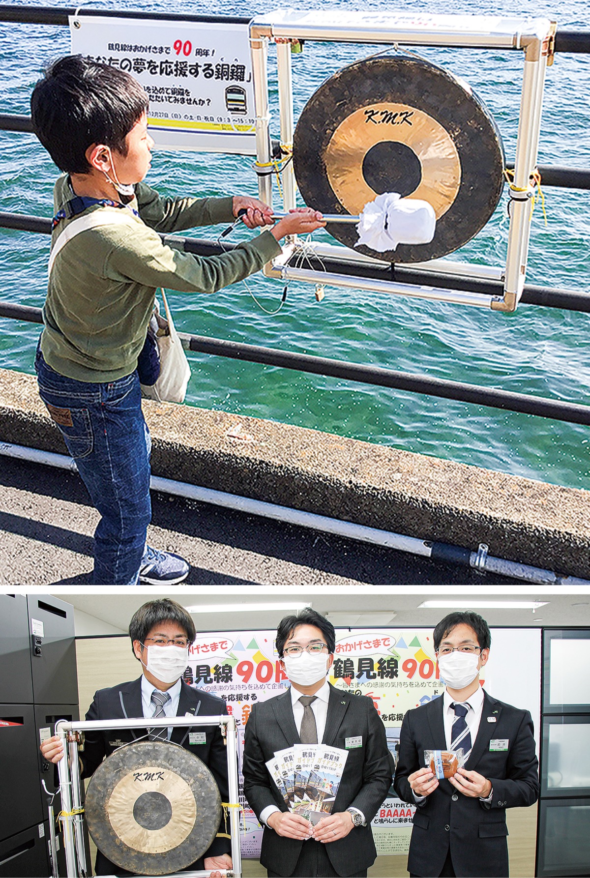JR鶴見線90周年の記念事業として12月27日までの土日祝日、海芝浦駅に打楽器の銅鑼が設置されている。鶴見線と南武線を担当するJR職員が企画したもので、鶴見駅などでは銅鑼にちなんで銅鑼焼きも販売。担当者は「目と音と味で楽しんでほしい」と話す。
