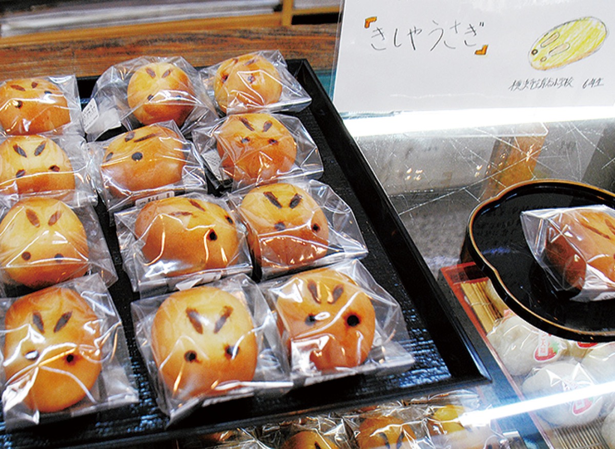 商品化にいたったのは、各店が実際に販売できると判断した和菓子1点とパン2点の3商品。盛光堂に採用されたのは、「日本文化」をテーマに、魅力ある和菓子の継承をコンセプトにした「きしやうさぎ」。シンプルなうさぎの焼き印が特徴のまんじゅうで、りんごの果肉入りの白あんを包んだ。