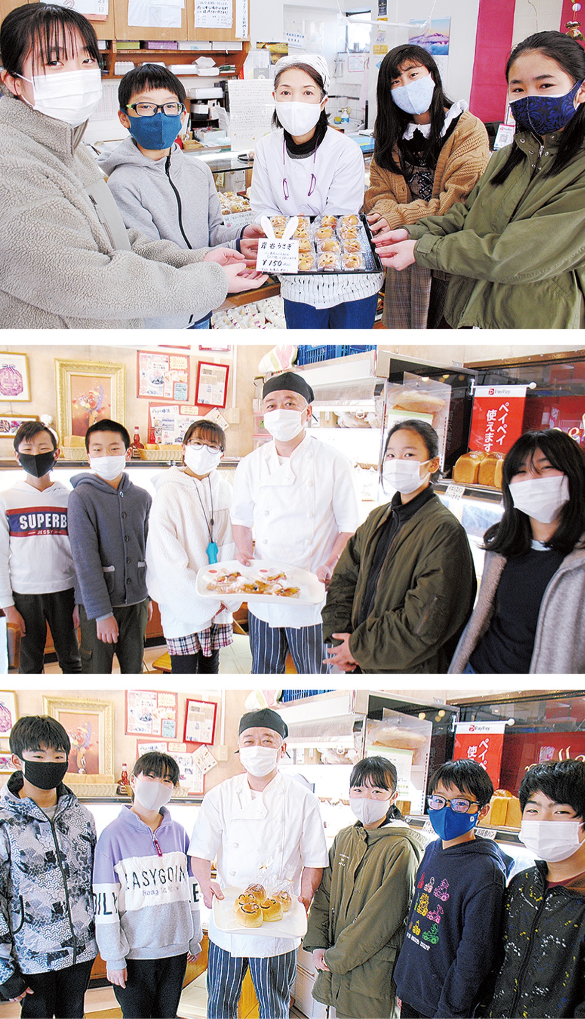 岸谷小学校6年生が考案し、地元商店が開発した和菓子とパンがこのほど完成し、1月20日から販売が開始された。商品コンセプトや値段設定なども提案した児童たちは「活動を通し岸谷を活気あふれるまちに」と話す。
