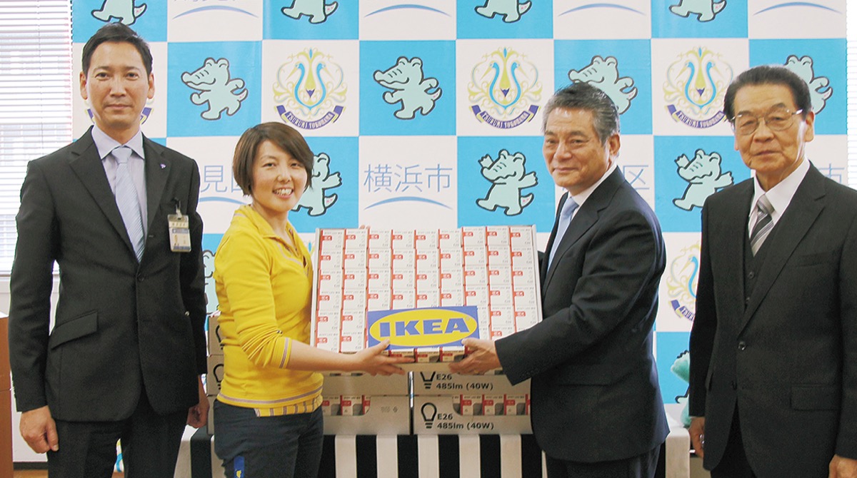 横浜市とイケア・ジャパン(株)は2015年、環境と調和した持続可能な社会を目指していくことを目的に連携協定を締結。イケアはこれまで約1万500個のLED電球を横浜市に提供している。