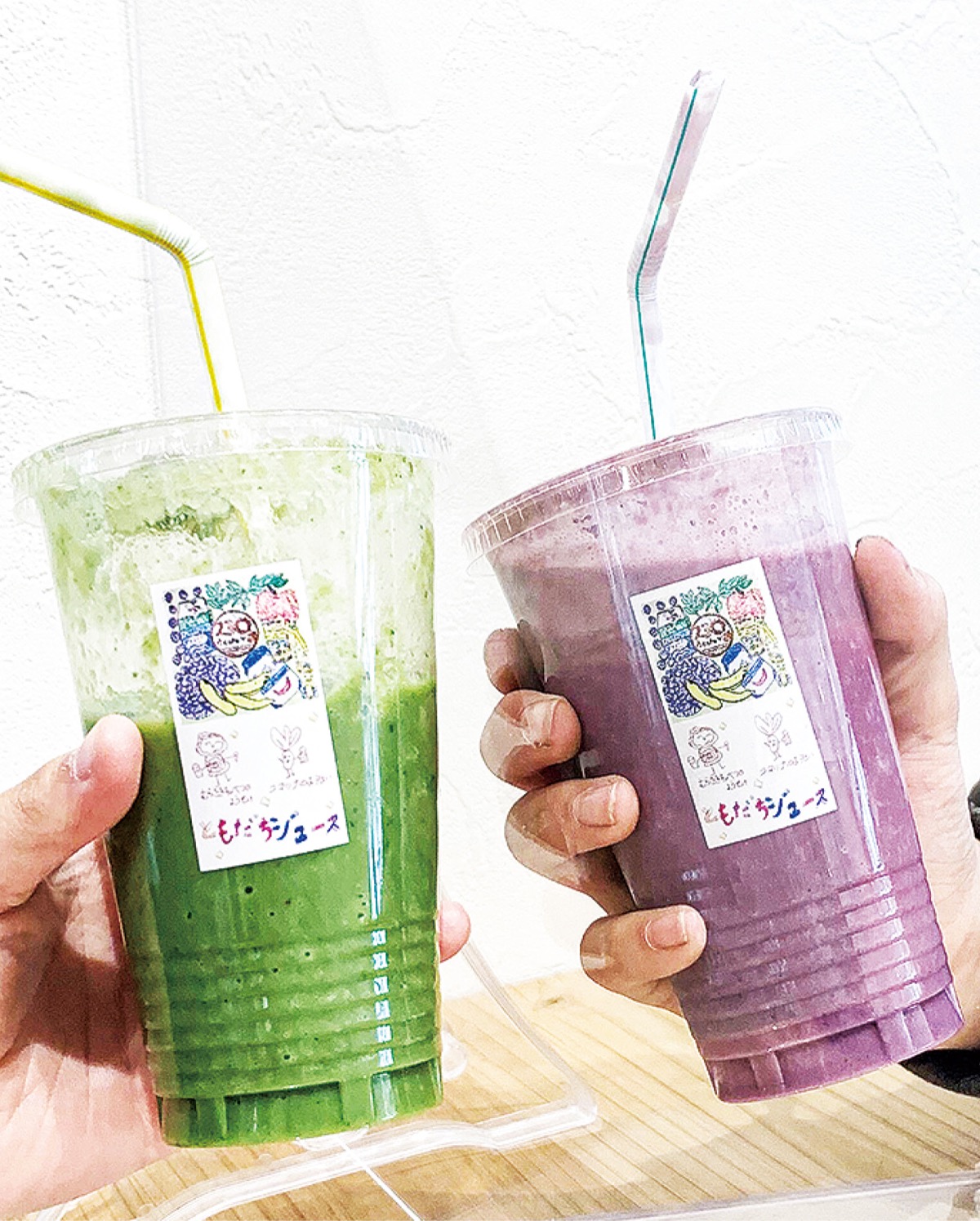 ともだちジュースは、230カフェ協力のもと、児童が校内の畑で育てた紫キャベツと小松菜をもとにジュースを作り、商品化したもの。