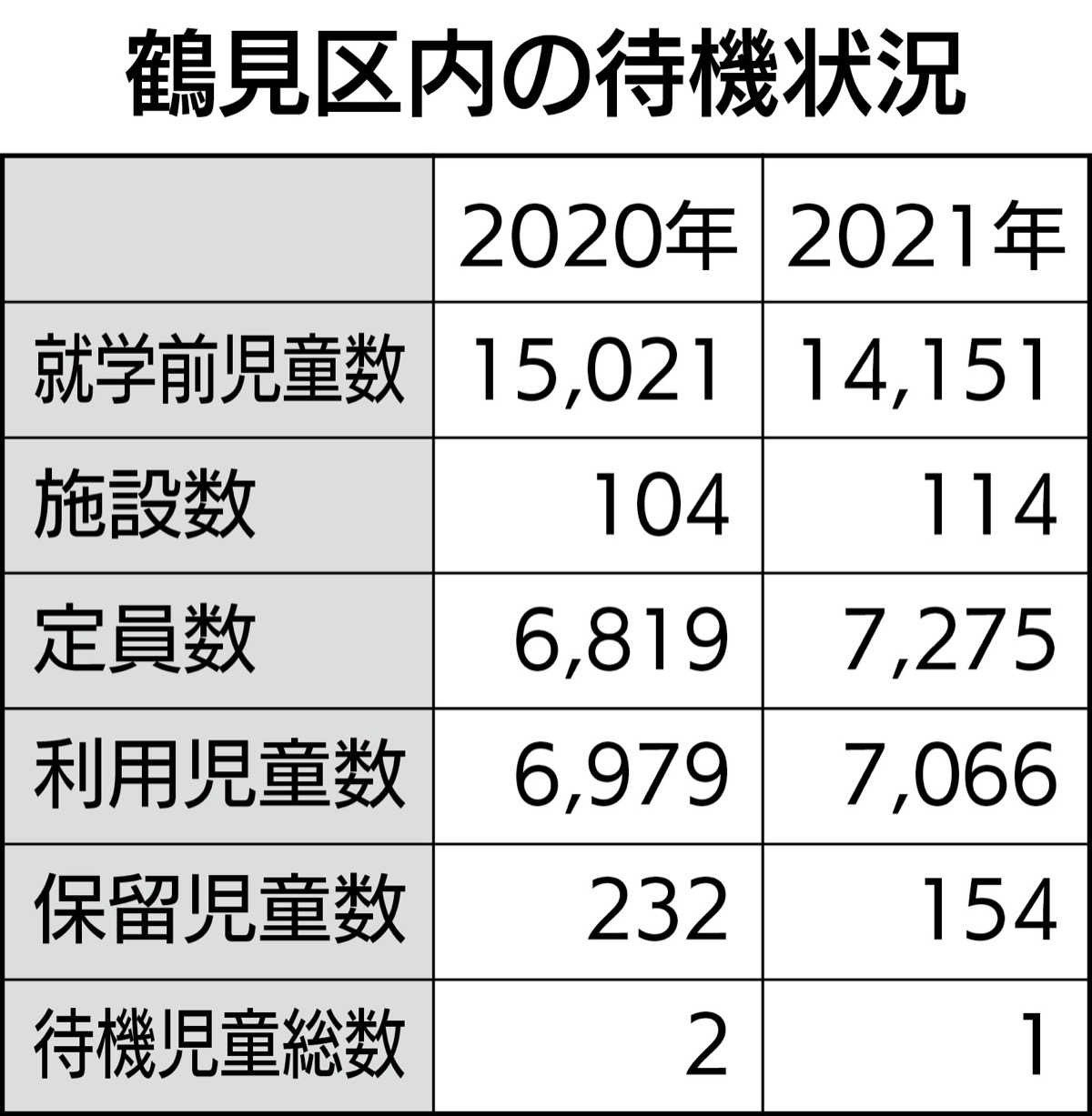 横浜市はこのほど、4月1日現在の市内待機児童数について、昨年から11人減の16人だったと発表した。鶴見区は1人減り、1人だった。