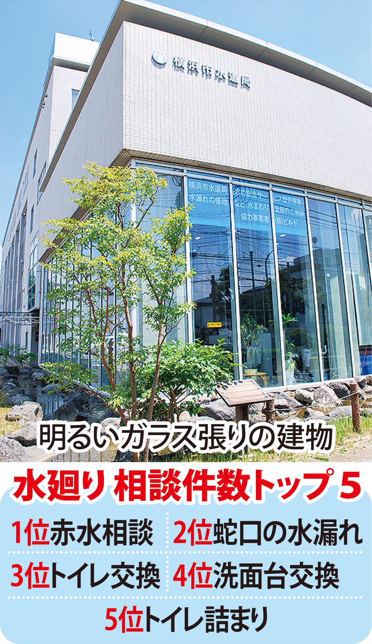 地域密着型ホームドクターとてして横浜市緑区上山に本社を置く創業37年の(株)ビルドは横浜市上下水道工事指定工事店として水廻りの修理や工事に長年取り組んできた。昨年4月からは市水道局「菊名ウォータープラザ」(港北区大豆戸町)に店舗を構え、約1年。「多数のお客様からの相談や修理依頼を受けてきました」とスタッフ。