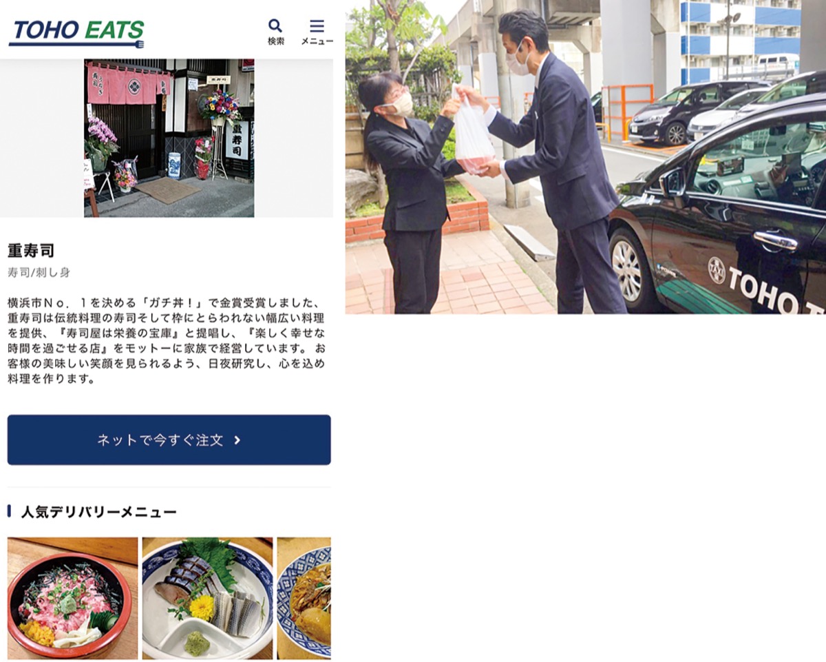 東宝タクシーは、新型コロナによるイベントや飲み会の自粛で利用客が減り、昨年4月の緊急事態宣言時には、例年の半分にまで売り上げが落ち込んだ。そんな中、タクシーの新たな活用法として飲食店の商品をデリバリーする「東宝イーツ」をスタートさせた。